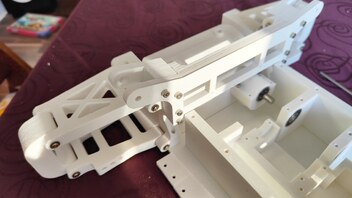 Dass der Differentialkörper problemlos auf das Tellerrad passt, brauche ich hier sicher nicht erwähnen. Die M4-Gewindebohrungen wurden dort ebenfalls bereits mit eingedruckt und mussten nur noch mit einem M4-Grundgeindebohrer nachgeschnitten werden.