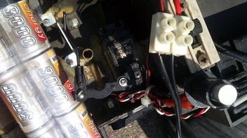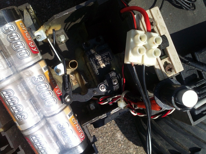 er sieht sehr aus als wäre er selber gebaut worden , er hat zwei servors einmal für die lenkung und einmal für das gas,