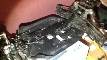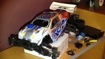In den letzten Tagen gab's ein paar Fortschritte. Zuerst hab ich die Karo mit Gewebeband verstärkt und bei den hinteren Löchern ein Stück ABS Plastik mit Epoxidharz eingesetzt und an der Stelle möchte ich mal einen Appell an die Hersteller richten: warum haben so schwere und große Autos so dünne Karos ? Wo is des Problem die etwas dicker zu machen, damit sie ned bei jeder Kleinigkeit reißen oder sonst was ,des würde in der Produktion doch nur ein paar Cent kosten