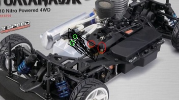 Du könntest da, wo der bremssattel montiert ist (durch rote Kreise gekennzeichnet), eine Carbon-oder aluplatte als Motorhalter montieren und in diese passende Löcher für die Motorschrauben bohren (grüne Kreise).Ich hab das schonmal bei einem 1/8er buggy gesehen und es hält gut wenn die Platte dick und die Schrauben lang genug sind. Bei Brushless Sets und Akkus schau mal bei Hobbyking.com vorbei aber achte darauf, dass du des Zeug von dem Europäischen Warenhaus kaufst denn dann hast du kein gschiss mit zoll etc.