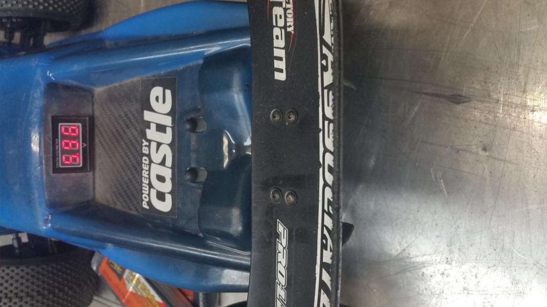 Welches Öl jetzt in den Dämpfern ist kann ich nicht sagen, da habe ich 1500, 2000 und 2500 Öl. Aus Erfahrung würde ich vorne auf 2500 und hinten 2000 Öl tippen. Auf dem Teppich lag er sehr gut, nur auf den unebenen Stellen hoppelte er etwas viel. Reifengröße ist 155mm, habe aber auch 180mm da.