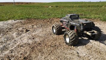 Auf der Wiese tun sich die kleinen Elektro Autos immer etwas schwerer. Ist einfach Sau viel Widerstand so ne Graswiese.