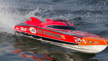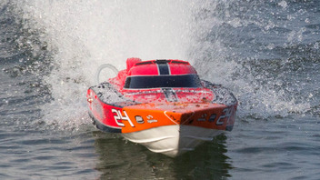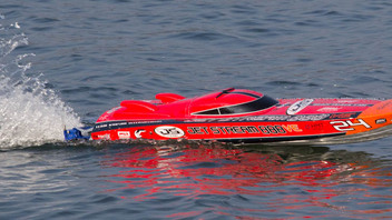 Bis jetzt ist noch alles Serie. Das Boot fährt ca. 65Km/H (nicht gemessen, aber neben einem her gefahren dass diese Geschwindigkeit laut GPS fährt). Bin ein absoluter Neuling im RC Bereich. Daher wurde von mir auch noch nichts an den "Trimklappen" zb. verändert.