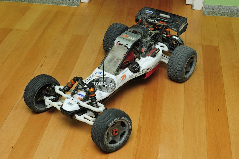 Die Karosserie, der Spoiler und natürlich die Chassisunterseite sowie die Querlenker von unten weise einige Gebrauchsspuren auf, wie sollte es auch anders sein. Diese schlagen sich aber nicht auf die Haltbarkeit nieder. Das Teil ist einfach wahnsinnig stabil !