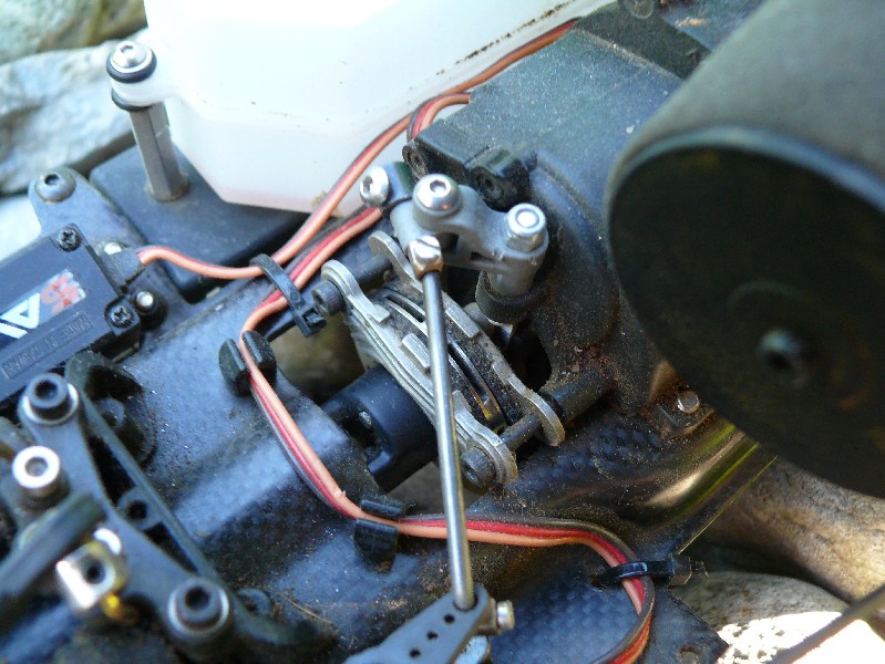 Dieser besteht aus 3mm dicken Aluminium gebaut und ist sehr stabil (ich kann mich draufstellen!). Er ermöglicht auch die Verwendung des Gasservos vorne, da er die Anlenkung möglich macht.