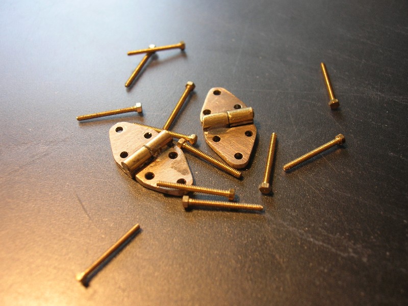 Die sind aus Messing.Habe die "Grundplatten" aus nem Messingprofil gesägt,gefräst,gebohrt,geschliffen,gefeilt...und dann ein 2er Messingrohr mit 1,4mm Innendurchmesser draufgelötet.Als Achse habe ich einen gekürzten Nagel genommen der genau 1,4mm im Durchmesser ist