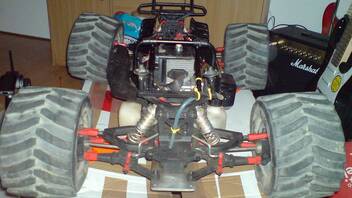 Es sind auf Lenkung [color=#ff0000]2x Rhino Digi Jumbo Servos[/color] verbaut und auf Gas/Bremse ein Hitec [color=#ff0000]HS 755MG[/color].Es sind auch Stahlzahnräder verbaut. Ist nicht weit weg von einem Evo 3! Steht dem Evo 3 in nichts nach. Alu Diff-Böcke sind auch dabei!