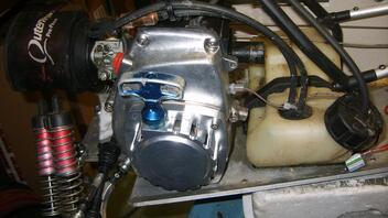 Ich habe mich sofort verliebt als ich sah das A-M-S einen Aluminium Starterdeckel anbietet. Bei der ersten Anprobe sah es einfach sch***** aus. Das Schwarz von der Motorabdeckung passte nicht. Kurzer Hand habe ich mit dem Dremel die Farbe abgeschliffen. Das Ergebnis sieht ihr auf dem Foto.